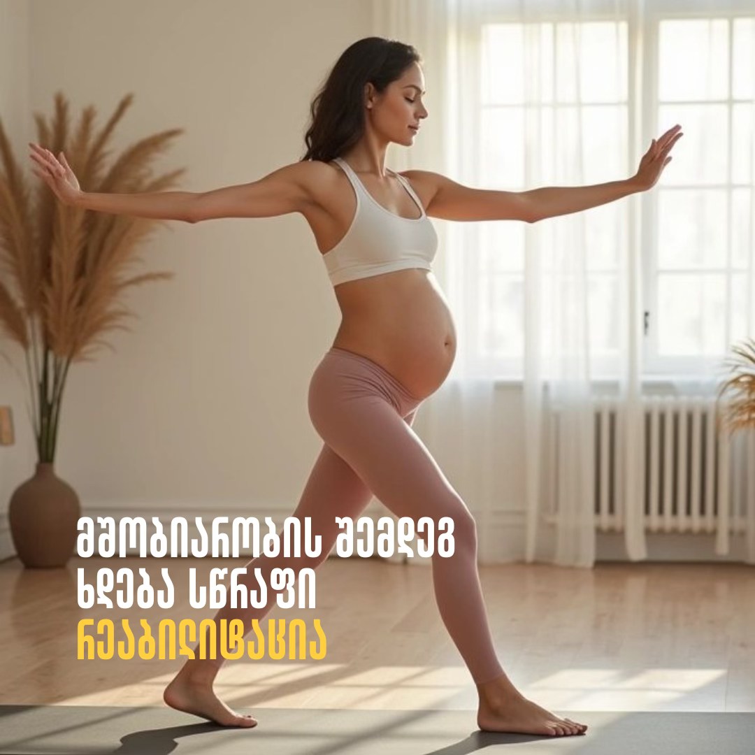 აქტიური ცხოვრების წესი ხელს უწყობს მშობიარობის შემდგომ პერიოდში ორგანიზმის სწრაფ აღდგენას. ვარჯიში გეხმარებათ სხეულის ტონუსის დაბრუნებასა და ფსიქოლოგიური ბალანსის ადვილად მიღწევაში.