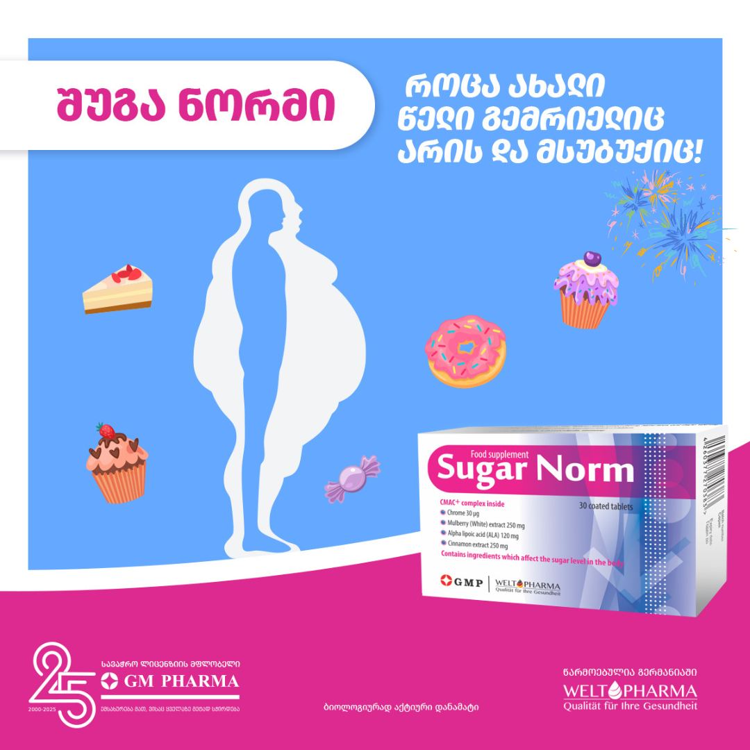 შუგა ნორმი წარმოადგენს გერმანული ხარისხის ბიოლოგიურად აქტიურ დანამატს, რომელიც ქრომის, თეთრი თუთის, ალფა-ლიპოის მჟავისა და დარიჩინის ექსტრაქტის კომბინაციით ხელს უწყობს სისხლში შაქრის დონის რეგულირებას. შუგა ნორმი ამცირებს მადას, განსაკუთრებით, ტკბილეულზე მოთხოვნილებას, არეგულირებს სისხლში შაქრის დონეს, ხელს უწყობს წონაში კლებას და ამცირებს დიაბეტის განვითარების რისკს. შუგა ნორმი მიიღება 1 ტაბლეტი ნახშირწყლებით მდიდარი საკვების მიღებამდე 15 წუთით ადრე, წყალთან ერთად.