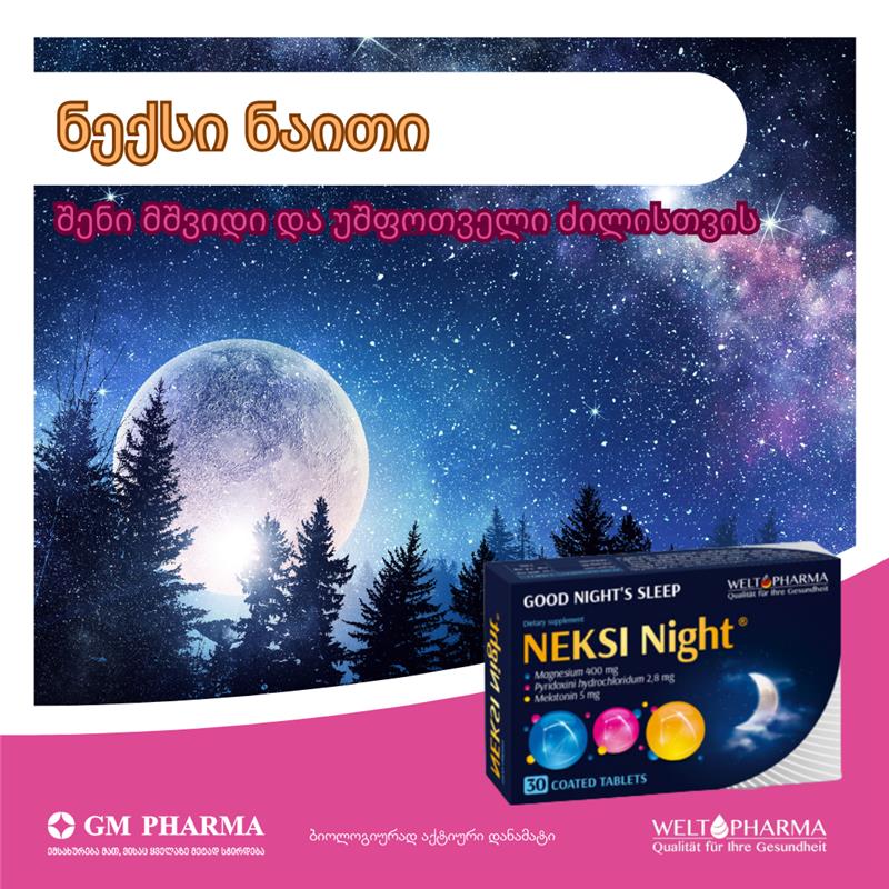 სწორედ ამ მიზანს ემსახურება ევროპული ხარისხის ბიოლოგიურად აქტიური საკვები დანამატი ნექსი ნაითი, რომელიც სამი აქტიური ნივთიერების - მელატონინის, მაგნიუმის და B6 ვიტამინის სინერგიით მოქმედებს. ეს კომბინაცია ერთ-ერთი ყველაზე ეფექტური და უსაფრთხო არჩევანია, რადგან ის არა მხოლოდ მელატონინის ბალანსს აღადგენს, არამედ მასში შემავალი მაგნიუმი უზრუნველყოფს კუნთების მოდუნებას, ამცირებს ნერვულ დაძაბულობასა და შინაგან დაღლილობას. B6 ვიტამინი კი მონაწილეობს სეროტონინის სინთეზში, რომელიც ემოციურ სტაბილურობასა და მელატონინის გამომუშავებას უდევს საფუძვლად.