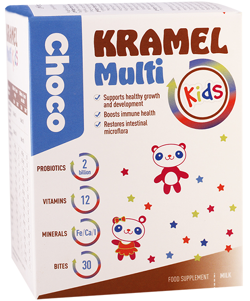 კრამელი მულტი ქიდსის 1 შოკოლადის ფილა შეიცავს ბავშვის ორგანიზმის ნორმალური ზრდა-განვითარებისათვის აუცილებელ 12 ვიტამინს, მინერალებს - რკინას, კალციუმს, იოდს. ასევე, ორგანიზმისთვის სასარგებლო ლაქტო- და ბიფიდობაქტერიებს.