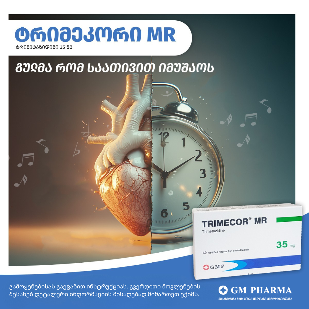 მედიკამენტების სწორედ ასეთ ჯგუფს მიეკუთვნება ტრიმეკორი MR (ტრიმეტაზიდინი), რომელიც ეხმარება გულის კუნთს, გადაყავს მისი მუშაობა „ენერგო-დამზოგველ“ რეჟიმში, რის ხარჯზეც გულის კუნთი შეუფერხებლად განაგრძობს შეკუმშვას, მაშინაც კი, როცა ჟანგბადის მიწოდება შემცირებულია. ასეთ რეჟიმში გული „ზოგავს ძალებს“, რაც ვლინდება ტკივილისა და დისკომფორტის შემცირებით და ფიზიკური დატვირთვის მიმართ ამტანობის გაზრდით. ტრიმეკორი MR არ ახდენს გავლენას არც არტერიული წნევის მაჩვენებელზე და არც გულისცემის სიხშირეზე.